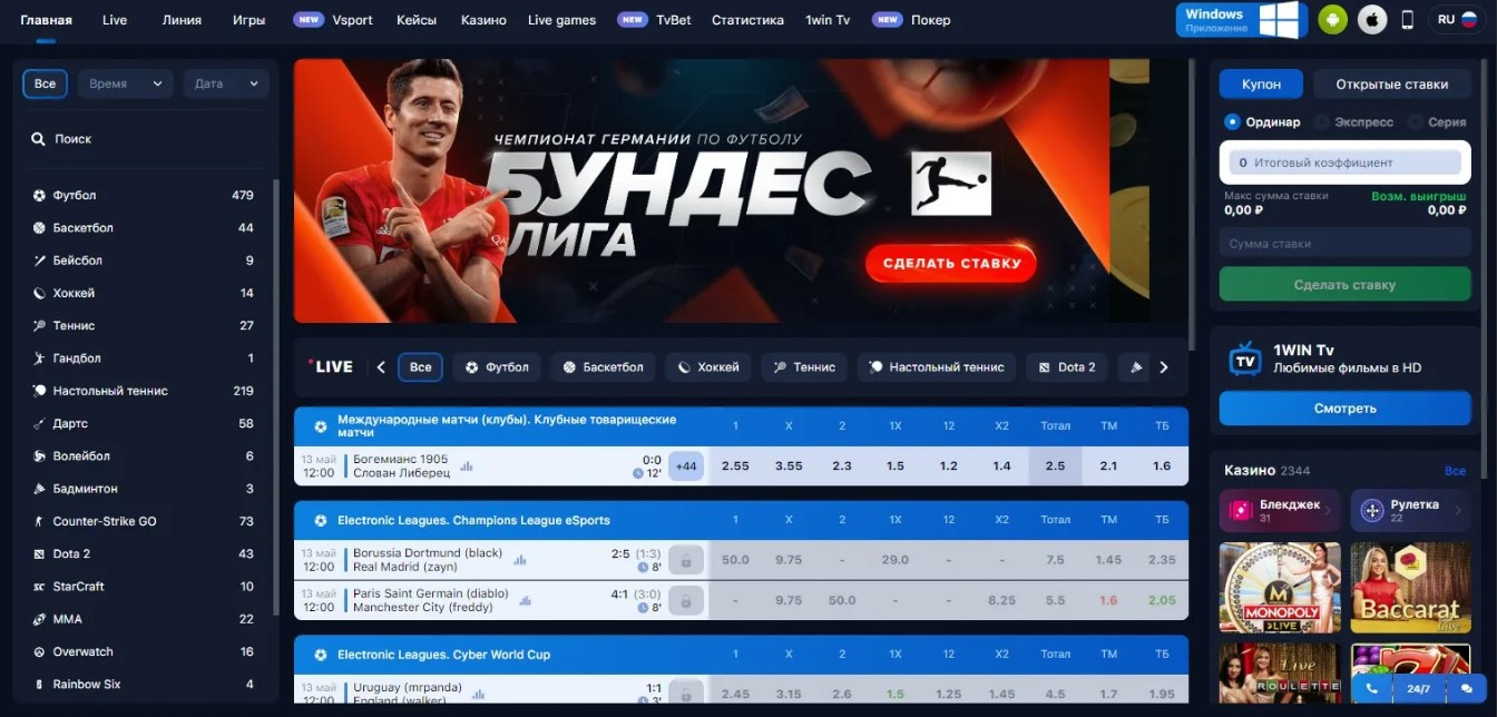 1Win casino бездепозитный бонус в верхней левой части страницы находится логотип компании и кнопка